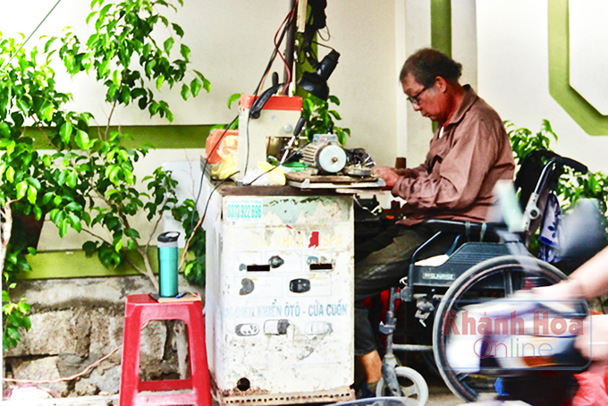 Mặc dù đi lại khó khăn nhưng hơn 40 năm qua ông Hòa vẫn lặng bám trụ với nghề. |